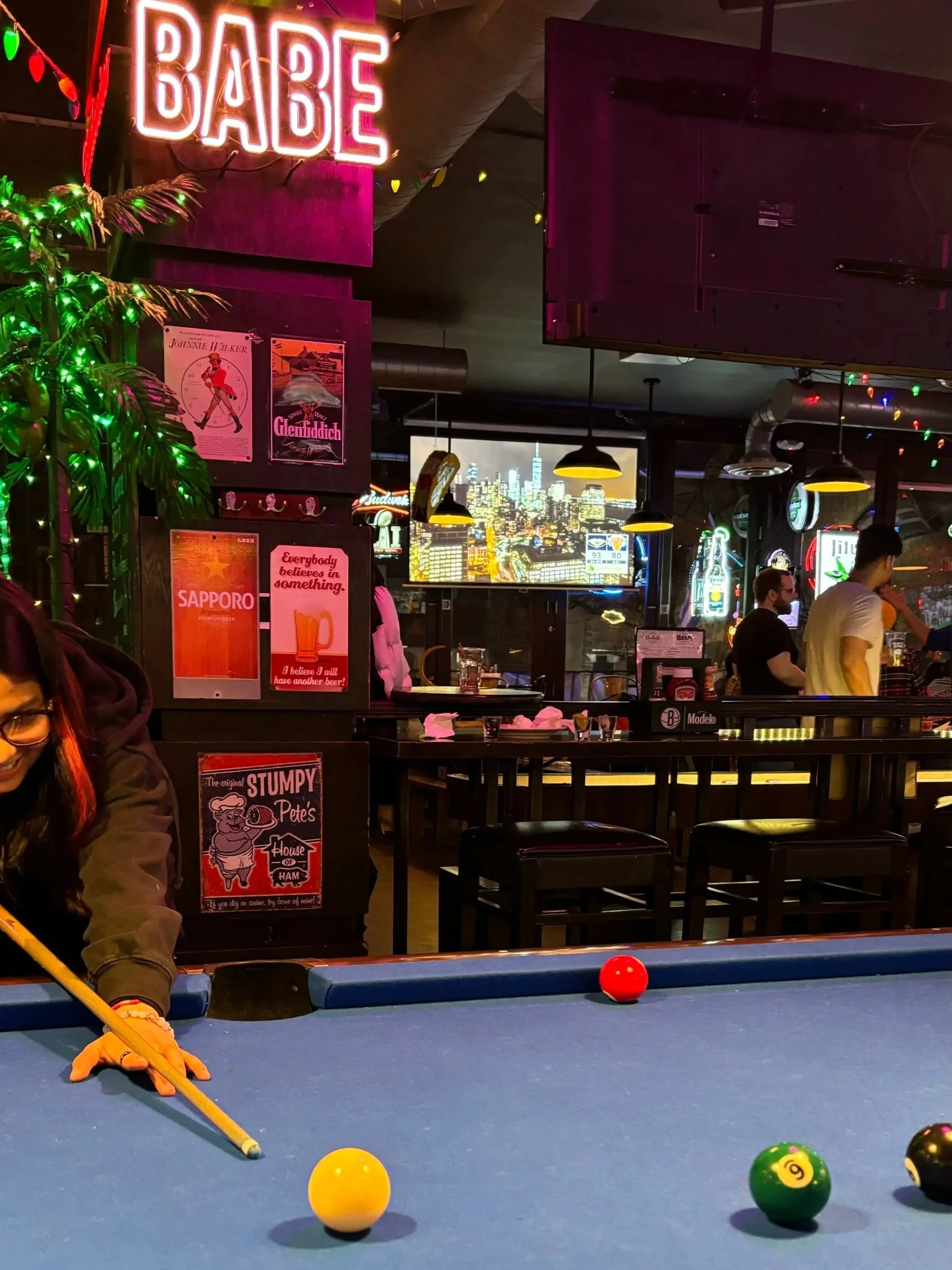 Pool tables = instant social structure. People need extra players, games rotate, and it’s completely normal to ask to join, even if you came alone.